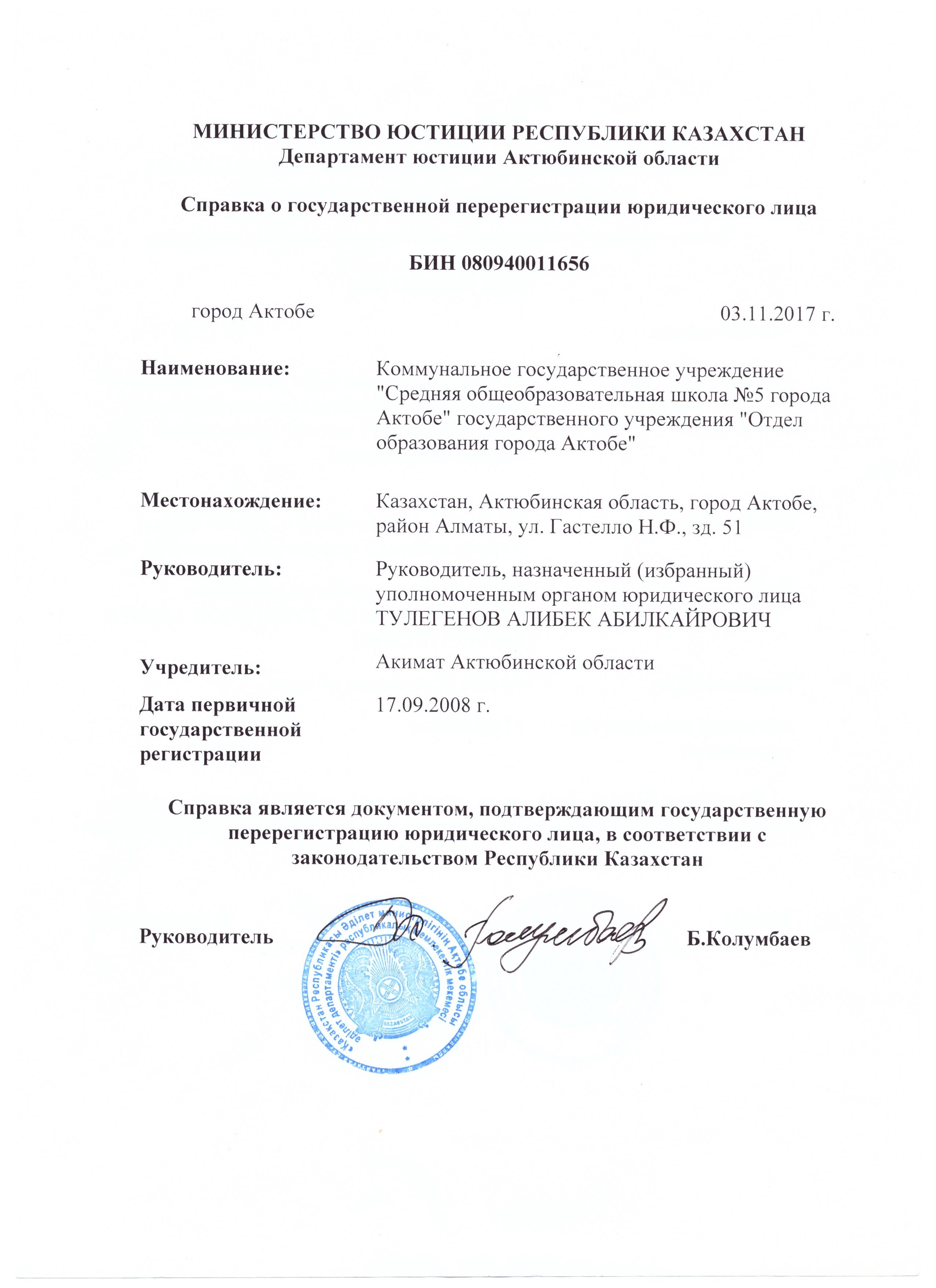«Ақтөбе қаласының №5 жалпы білім беретін орта мектеп» КММ